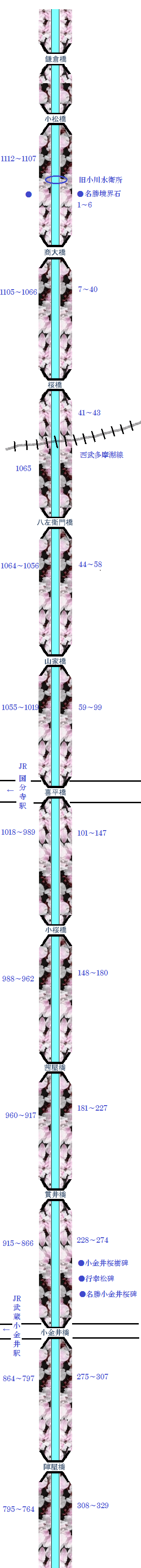![]() 玉川上水桜並木両岸の小金井桜 樹木No.をクリックしてご覧ください ![]()