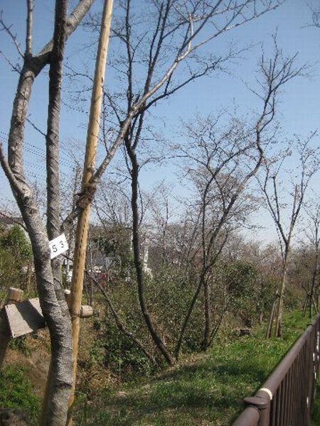 名勝境界から喜平橋までの(左岸)樹番号#1〜#100:一部の樹が開花しているが大部分は開花まで跡2〜3日はかかるでしょう。 現在開花しているのは#13、##26、#31、#58、#95の6樹です。